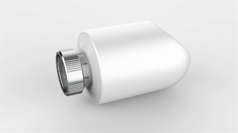 金屬旋鈕的內(nèi)齒紋設(shè)計(jì)使其能與暖氣閥門緊密連接,接口簡潔。顯示屏在熄滅狀態(tài)下與白色面板融為一體,保持外觀的整體性。