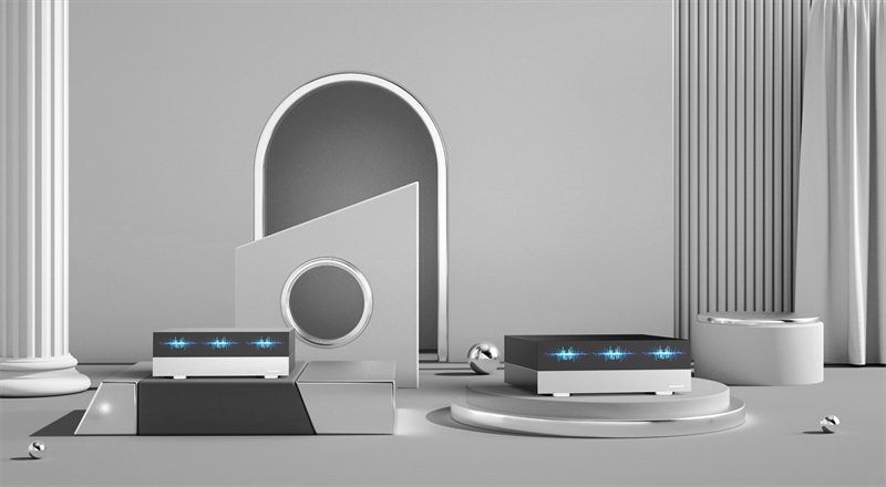 功放器以沉穩(wěn)的立方體為基座,傳遞聲音輸出的可靠感。