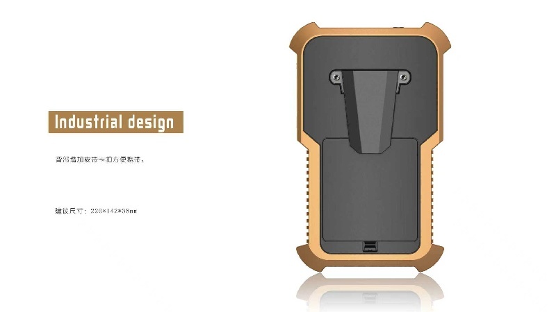整機(jī)采用深灰與黑色搭配的工業(yè)配色方案,外殼使用高強(qiáng)度工程塑料與橡膠復(fù)合材料,具備良好的防摔抗震性能。